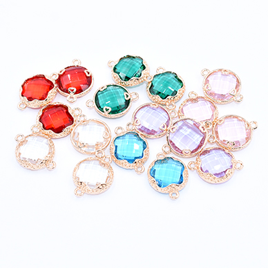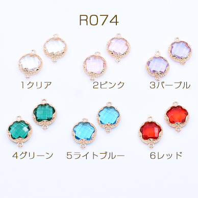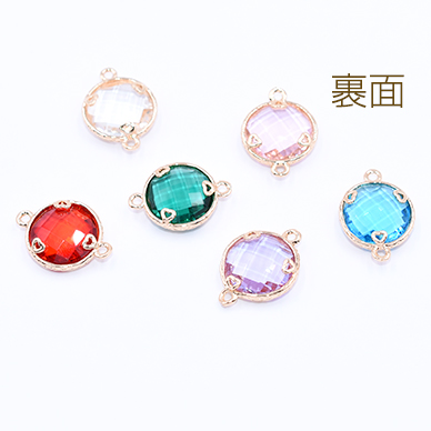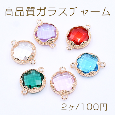 高品質ガラスチャーム 丸型 2カン付き 14×19mm ゴールド【2ヶ】