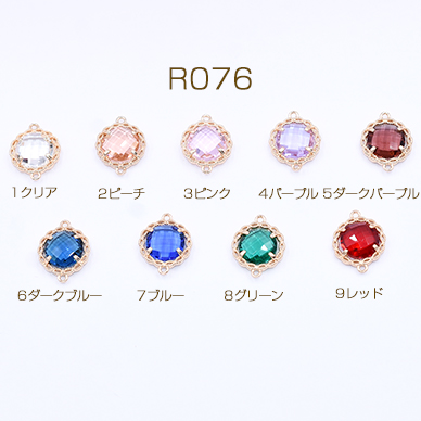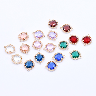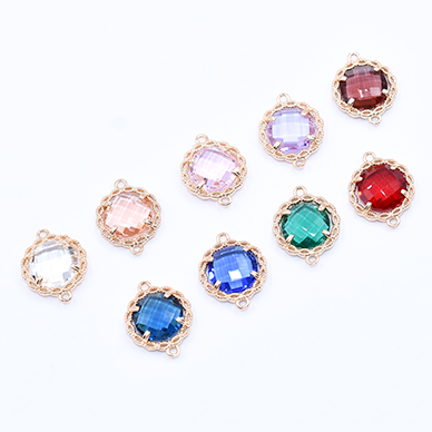高品質ガラスチャーム 丸形 2カン付き 14×17mm ゴールド【2ヶ】