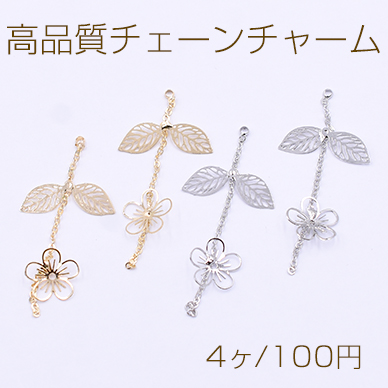 高品質チェーンチャーム カン付き 透かし リーフ×梅【4個入り】