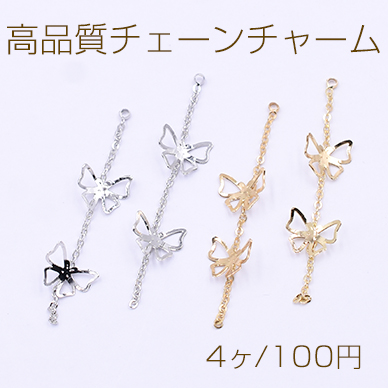高品質チェーンチャーム カン付き 透かし 蝶【4個入り】