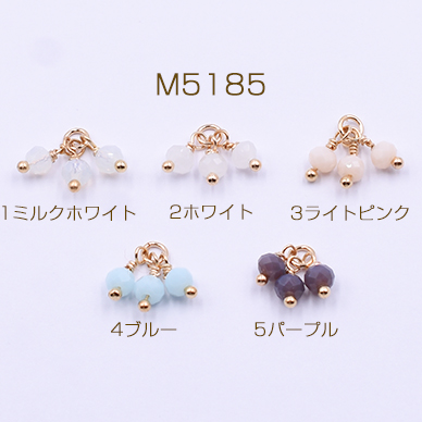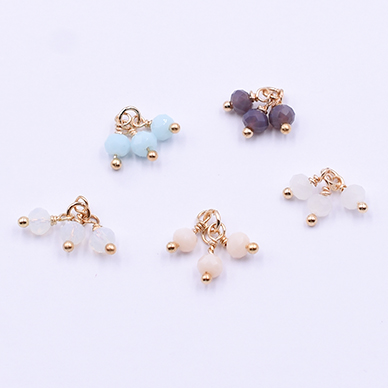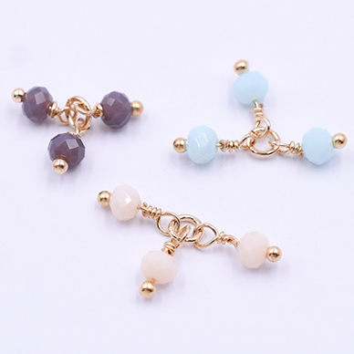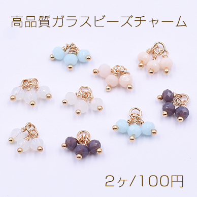 高品質ガラスビーズチャーム めがね留め ボタンカット 3連 3×4mm【2ヶ】