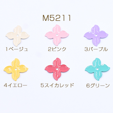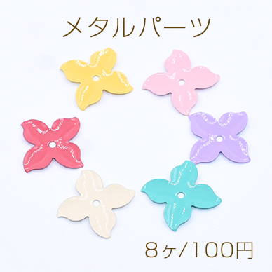 メタルパーツ 塗装フラワー 4弁花 14×14mm 1穴【8ヶ】