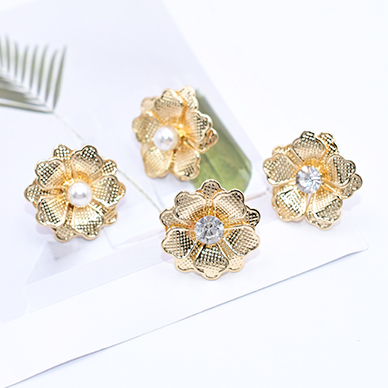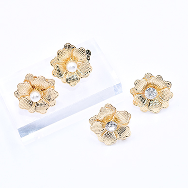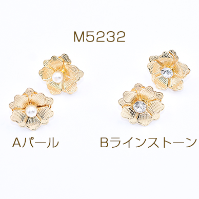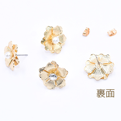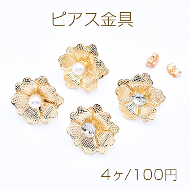 ピアス金具 フラワー パール/ラインストーン付き 19×19mm ゴールド【4ヶ】