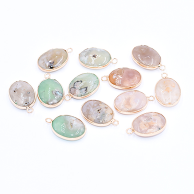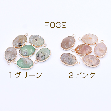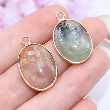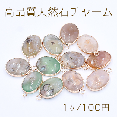 高品質天然石チャーム 桜アゲート 楕円形 1カン ゴールド【1ヶ】