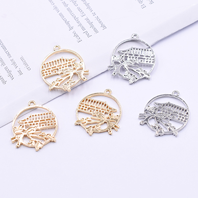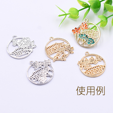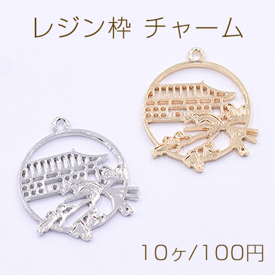 レジン枠 チャーム サークル 宮殿とツリーと鳥 1カン【10ヶ】