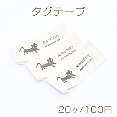 タグテープ ハンドメイド 猫A 15×37mm ブラック【20ヶ】