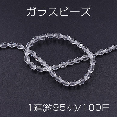 ガラスビース オーバルカット 3×5mm クリア【1連(約95ヶ)】
