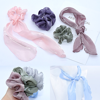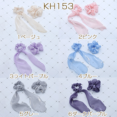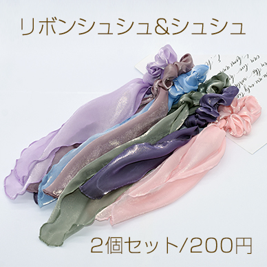 リボンシュシュ&シュシュ ヘアアクセサリー ヘアゴム オーガンジー素材【2個セット】
