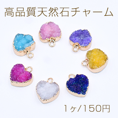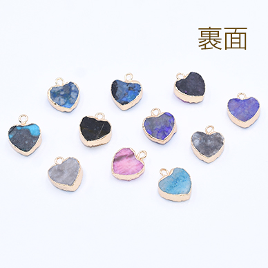 高品質天然石チャーム 瑪瑙 アゲート ハート型 1カン ゴールド【1ヶ】
