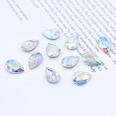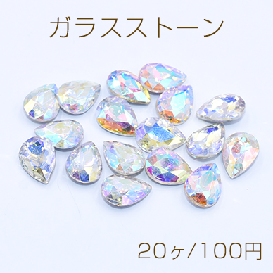 ガラスストーン Vカット 雫型 ドロップ ABカラー オーロラ 10×14mm【20ヶ】