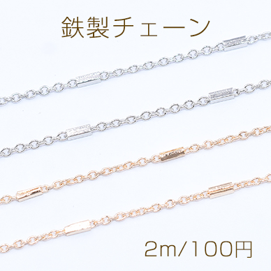 鉄製チェーン 小豆チェーン 1.5mm 四角パイプ付き 1.5×4mm【2m】