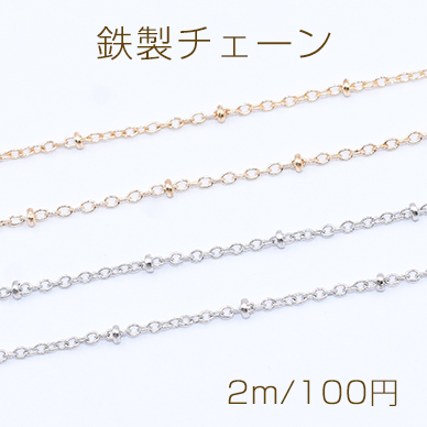 鉄製チェーン ビーズ付き小豆チェーン 1.5mm【2m】