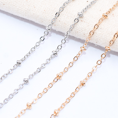 鉄製チェーン ビーズ付きツブシ小判チェーン 1.5mm【2m】
