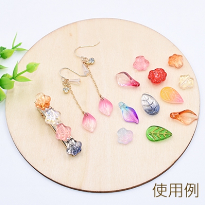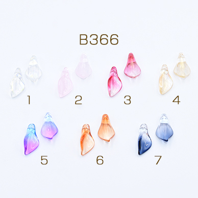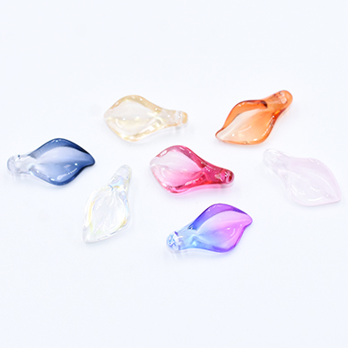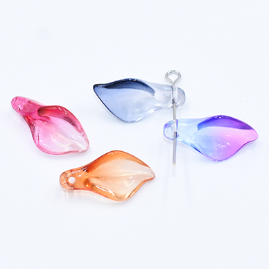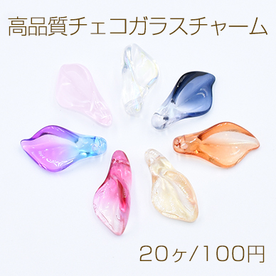 ガラス製リーフチャーム チェコ調ガラスチャーム ユリの花びらモチーフ 上部穴あり 10×20mm 全7色
