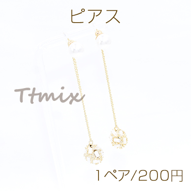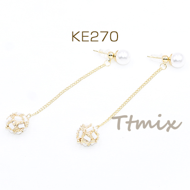 ピアス パール&チェーンピアス ボール ポストピアス ゴールド【1ペア】