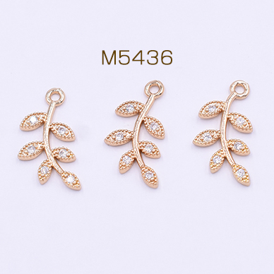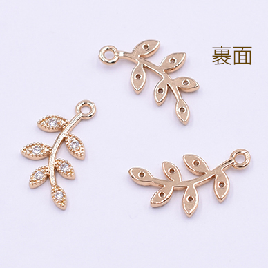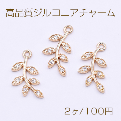 高品質ジルコニアチャーム リーフの枝チャーム 1カン 10×18mm ゴールド【2ヶ】