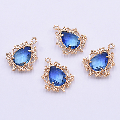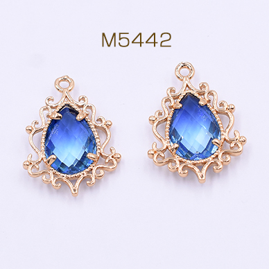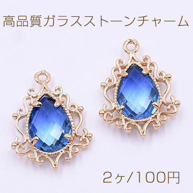 高品質ガラスストーンチャーム しずく型 1カン 19×25mm ゴールド/サファイア【2ヶ】