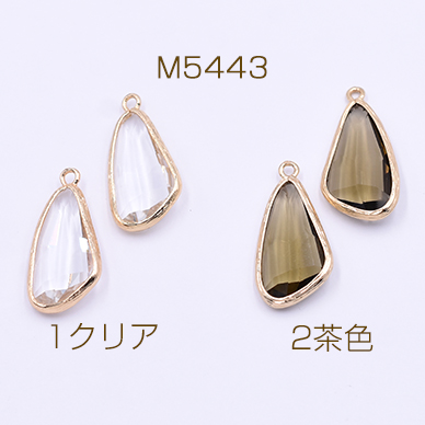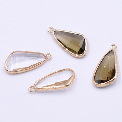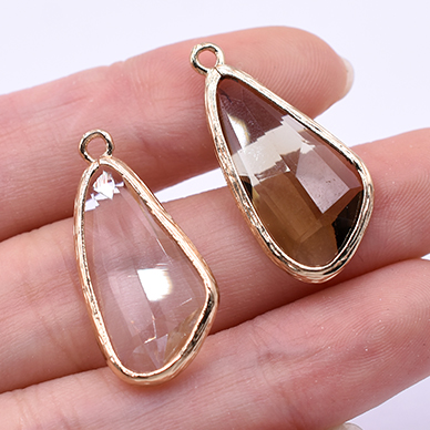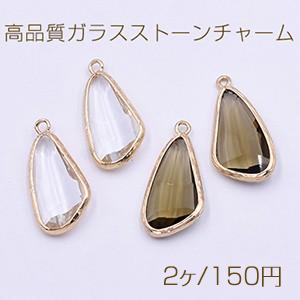 高品質ガラスストーンチャーム 変形しずく型 1カン 14×28mm ゴールド【2ヶ】