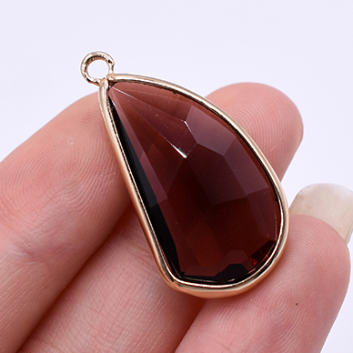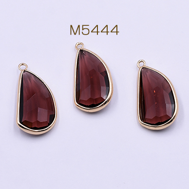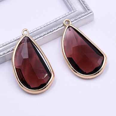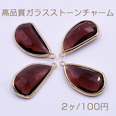 高品質ガラスストーンチャーム 変形しずく型 1カン 16×30mm ゴールド/ダークパープル【2ヶ】