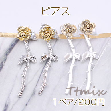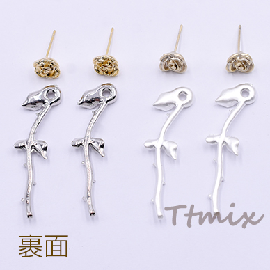 バラ/枝チャーム→合金製 ピアスポスト→スチール製 ピアスキャッチ→シリコン