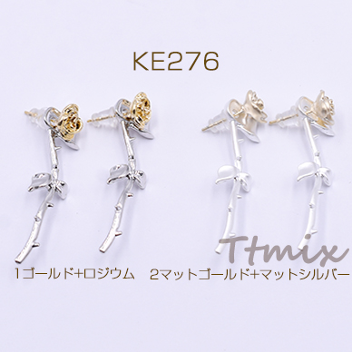 ピアス 1本のバラのピアス 枝チャーム ポストピアス【1ペア】