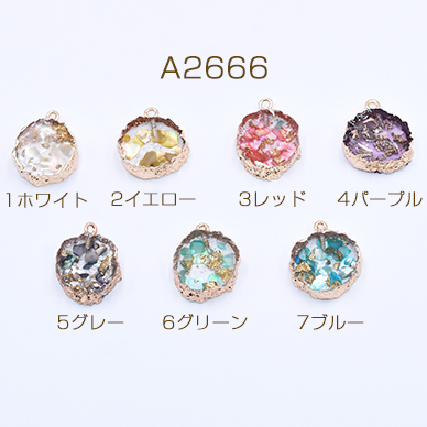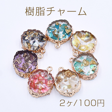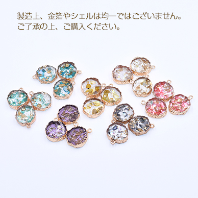 樹脂チャーム 金箔とシェルパウダー封入 円形 1カン 18mm【2ヶ】