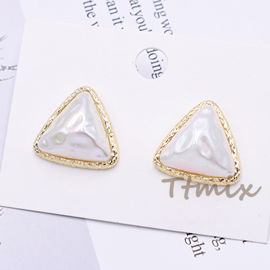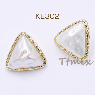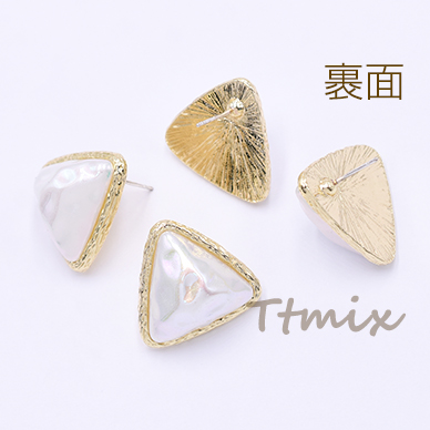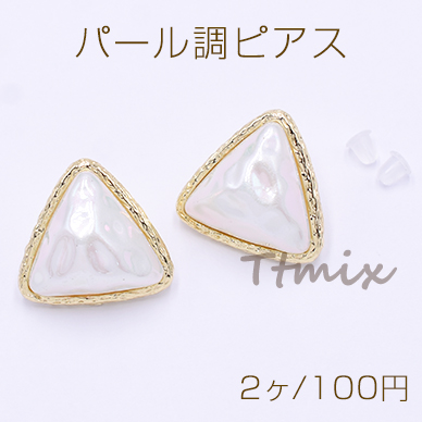 パール調ピアス 三角形 21×21mm ポストピアス ゴールド【2ヶ】