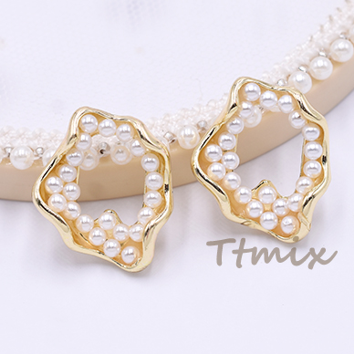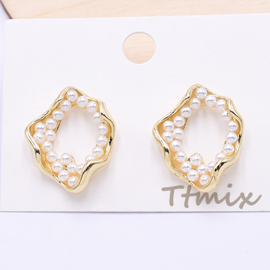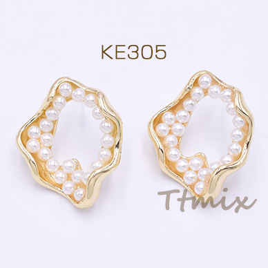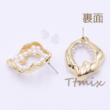 パール調ピアス 不規則型 23×28mm ポストピアス ゴールド【2ヶ】