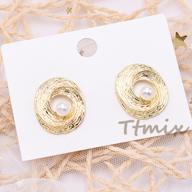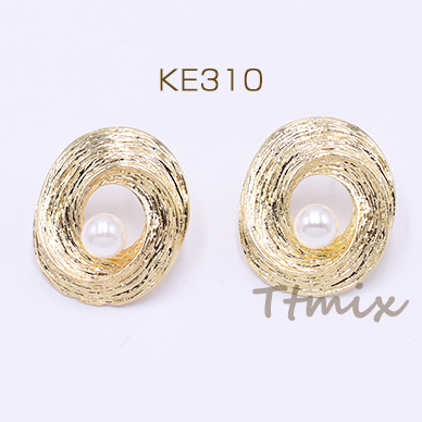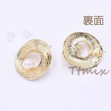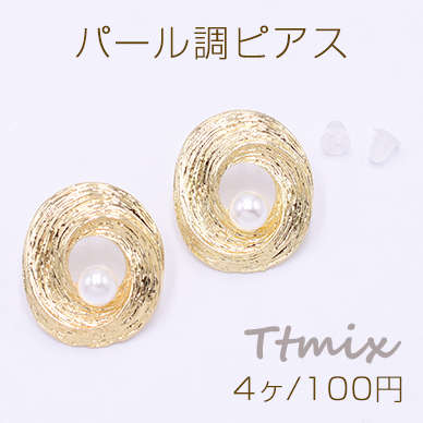 パール調ピアス 鳥の巣 20×24mm ポストピアス ゴールド【4ヶ】