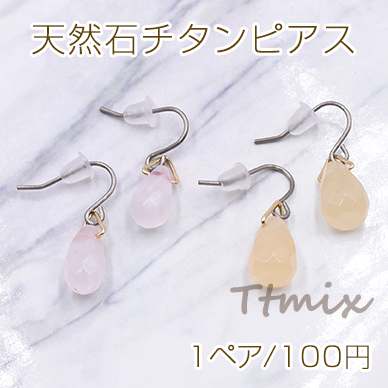 天然石チタンピアス 雫カット フックピアス【1ペア】