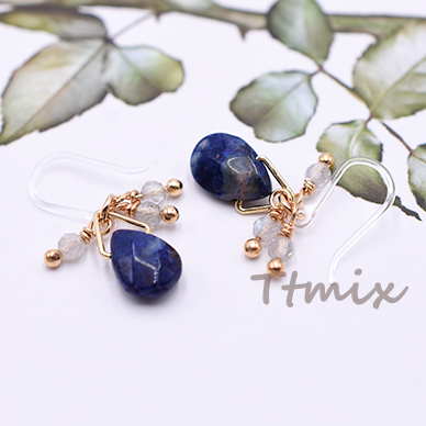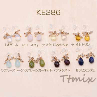 チャーム→天然石 ピアスフック→樹脂製 ピアスキャッチ→樹脂製