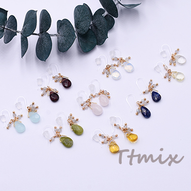 天然石樹脂ピアス ビース×雫カット フックピアス【1ペア】