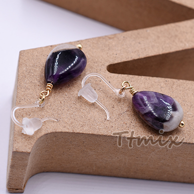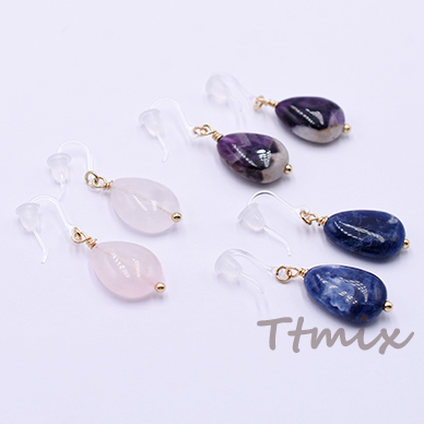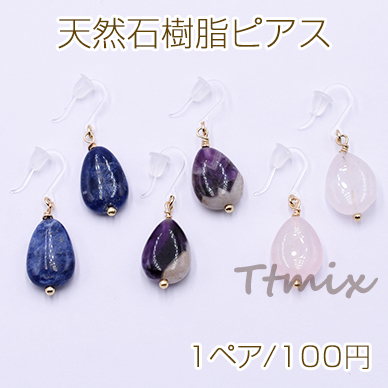天然石樹脂ピアス 雫型 フックピアス【1ペア】