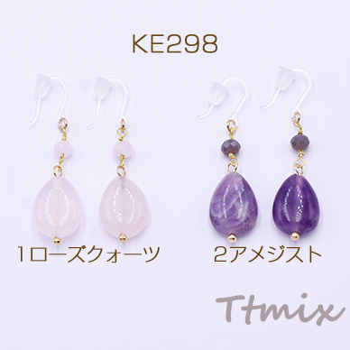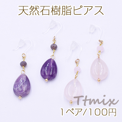 天然石樹脂ピアス ビース×雫型 フックピアス【1ペア】
