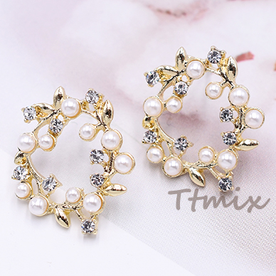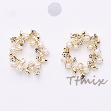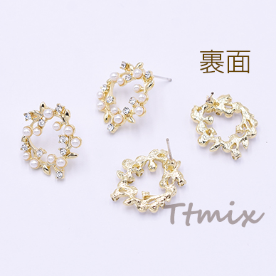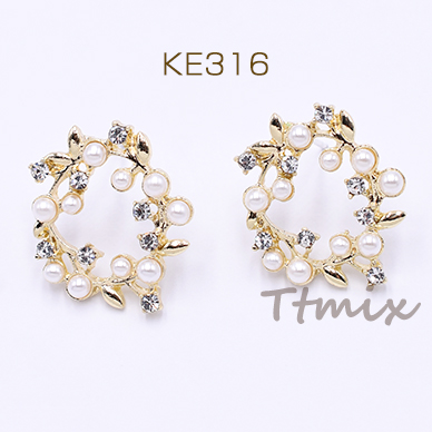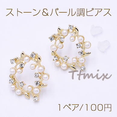 ストーン&パール調ピアス 花冠 17×20mm ゴールド【1ペア】