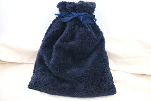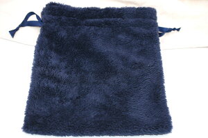ナチュラルボア巾着 ふわふわファー付き ダークブルー 20×25cm【1ヶ】 ※ネコポス単品1点まで