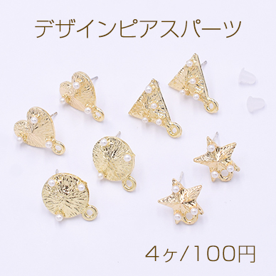 デザインピアスパーツ パール付き 全4種 1カン ゴールド【4ヶ】
