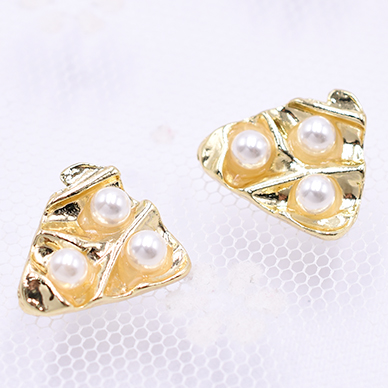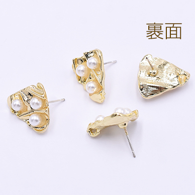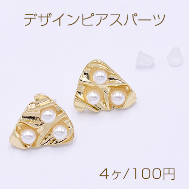 デザインピアスパーツ パール付き 三角形 1カン 16×17mm ゴールド【4ヶ】
