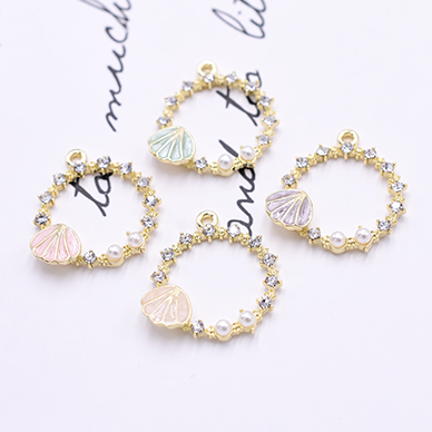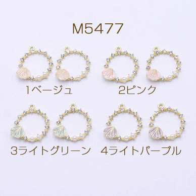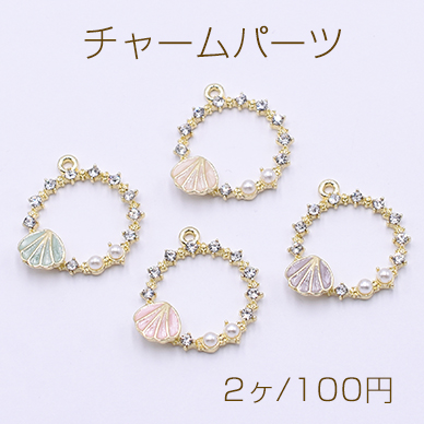 チャームパーツ フープ 1カン エポ貝殻&パール&石付き ゴールド【2ヶ】