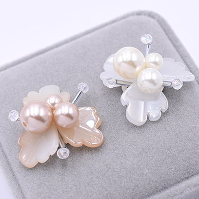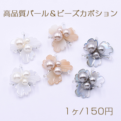 高品質パール&ビーズカボション フラワーパーツ 花型ハンドメイドアクセサリーパーツ 三弁花 30mm【1ヶ】