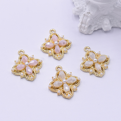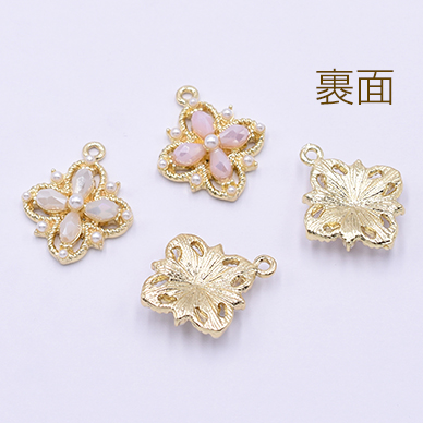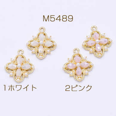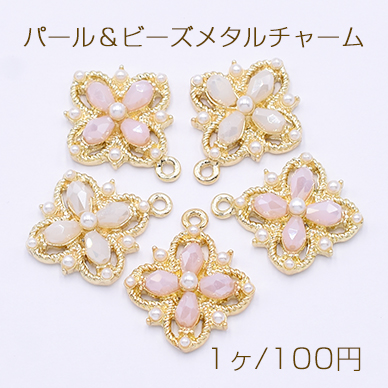 パール&ビーズメタルチャーム 菱形 1カン 19×23mm ゴールド【1ヶ】