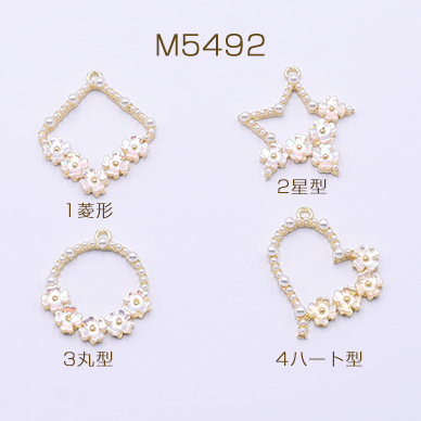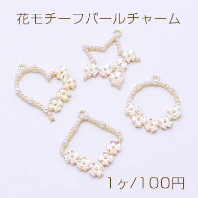 花モチーフパールチャーム 全4種 1カン ゴールド【1ヶ】