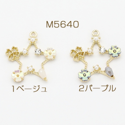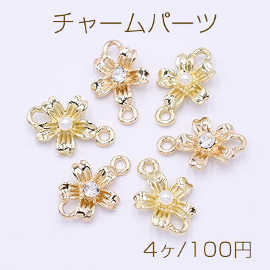 チャームパーツ パール&石付き フラワー 2カン 11×16mm ゴールド【4ヶ】