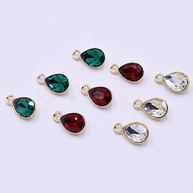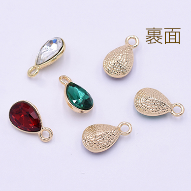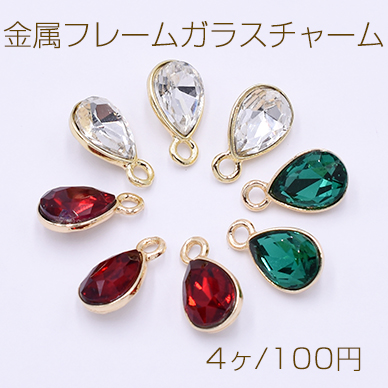 金属フレームガラスチャーム 雫型 1カン 8×14mm ゴールド【4ヶ】