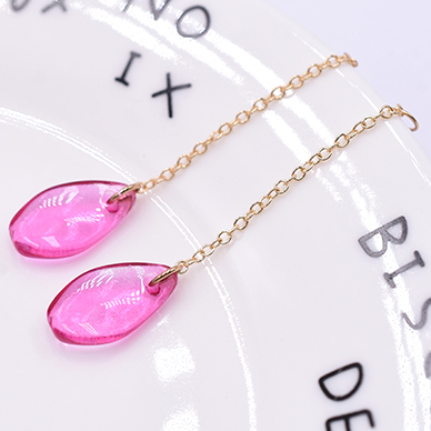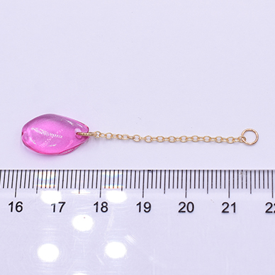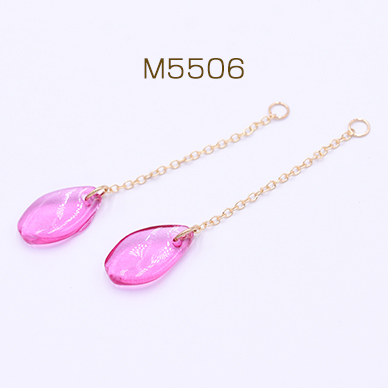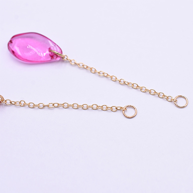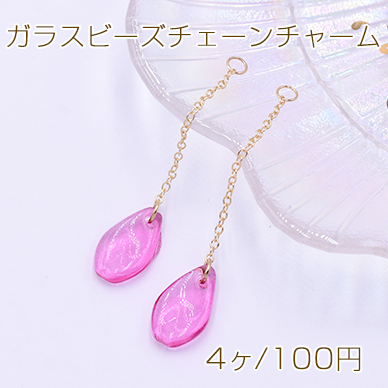 ガラスビーズチェーンチャーム 花びら 10×17mm ゴールド/ローズピンク【4ヶ】
