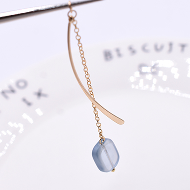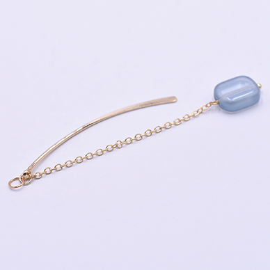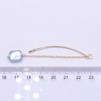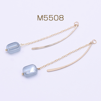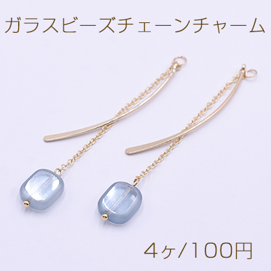 ガラスビーズチェーンチャーム 長方形 9×11mm ゴールド/ブルー【4ヶ】