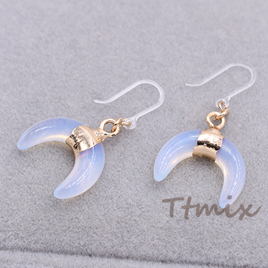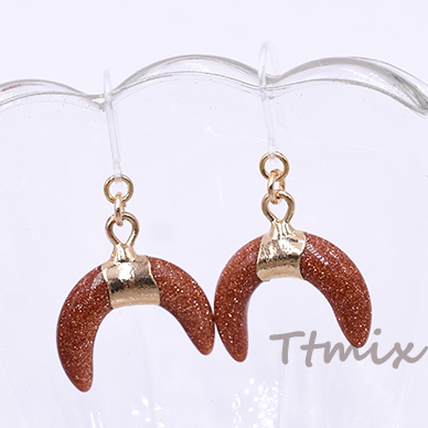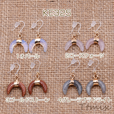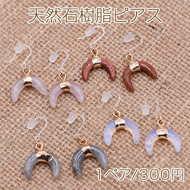 天然石樹脂ピアス 月型 樹脂フックピアス キャッチ付き【1ペア】