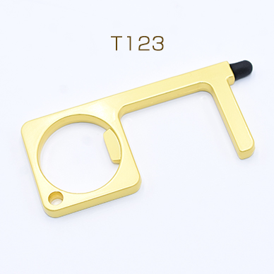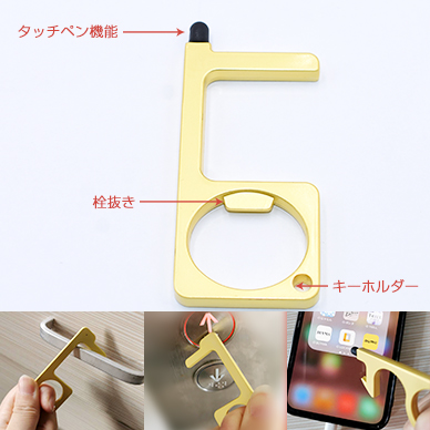 マルチドアオープナーNO.3 非接触 多機能 プッシュスティック タッチペン 栓抜き マットゴールド