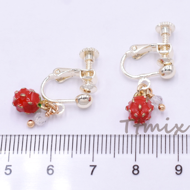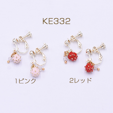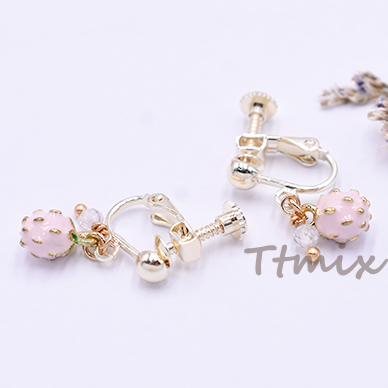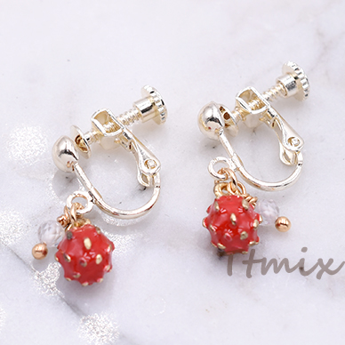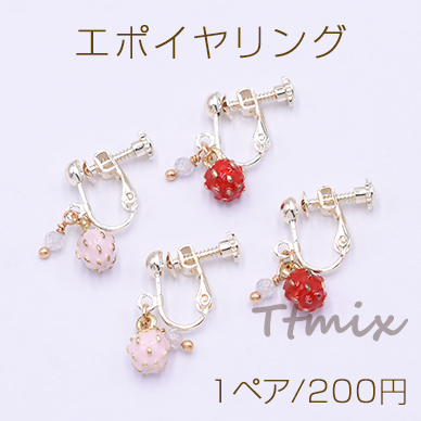 エポイヤリング ネジバネ式イヤリング 4mm玉 苺 天然石ビーズ【1ペア】
