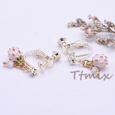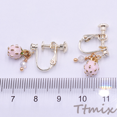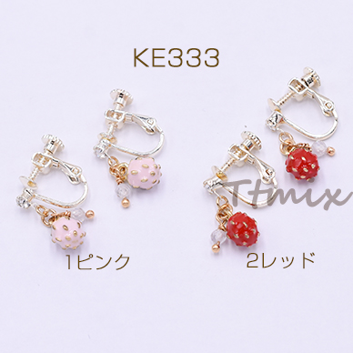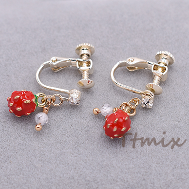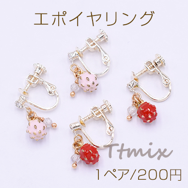 エポイヤリング ネジバネ式イヤリング 3mm石付 苺 天然石ビーズ【1ペア】